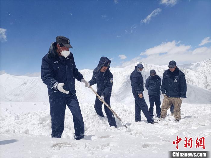 日前,青海省南部的三江源區(qū)域多地降雪,當(dāng)?shù)厣鷳B(tài)管護(hù)人員開啟艱難的風(fēng)雪巡山路。據(jù)悉,青海省玉樹藏族自治州曲麻萊縣約改鎮(zhèn)崗當(dāng)村的生態(tài)管護(hù)人員,野外巡山途中,大雪封山車輛被困。生態(tài)管護(hù)人員清雪無果,便徒步抄小道抵達(dá)巡護(hù)目的地。返程時(shí),當(dāng)?shù)啬撩裼媚ν熊噷⑸鷳B(tài)管護(hù)人員送至車輛旁邊。
