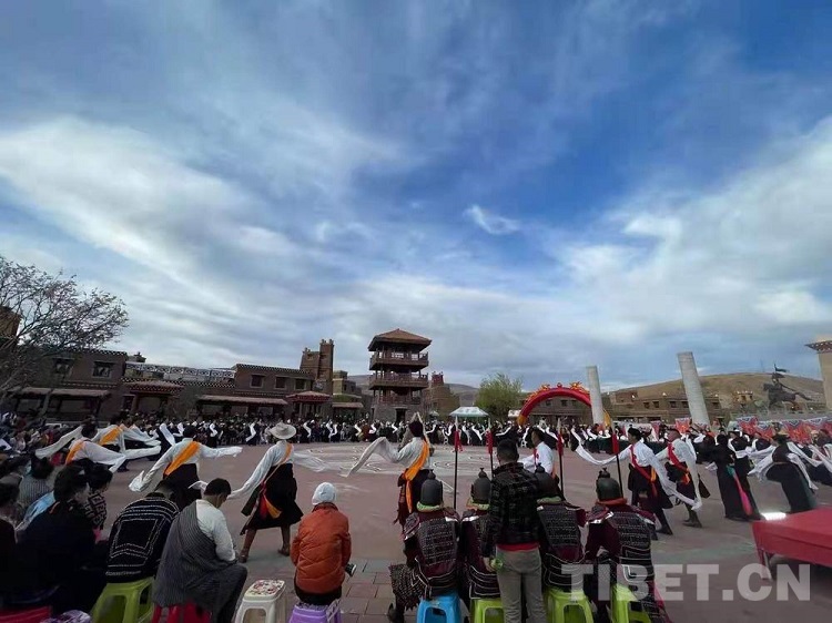 圖為四川省甘孜州甘孜縣格薩爾王城文化廣場上的歌舞表演