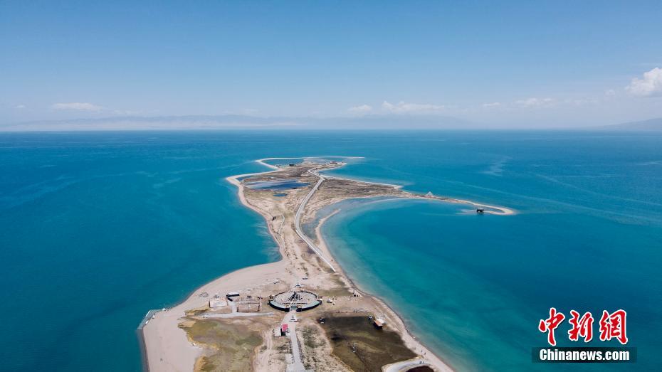 6月7日,航拍青海湖二郎劍景區(qū)一角碧波蕩漾,風景如畫。(無人機照片) 中新社記者 李江寧 攝