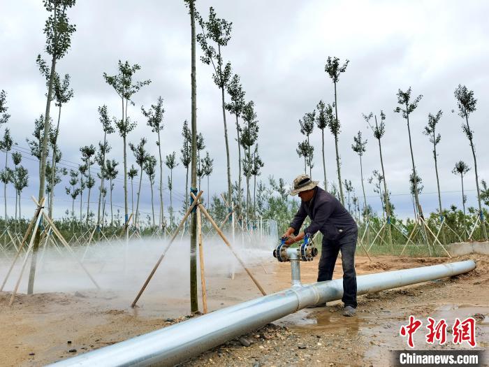 正如何香龍說的“三分種,七分護(hù)”,栽樹完成后,為了能讓樹苗存活,澆水是必不可少的工作?!案珊?、風(fēng)大,都是我們這里植被生存面臨的難關(guān),為此,青海省林草局投資200萬元鋪設(shè)了灌溉系統(tǒng),每棵樹特地用三腳架固定起來了?!焙蜗泯堈f。