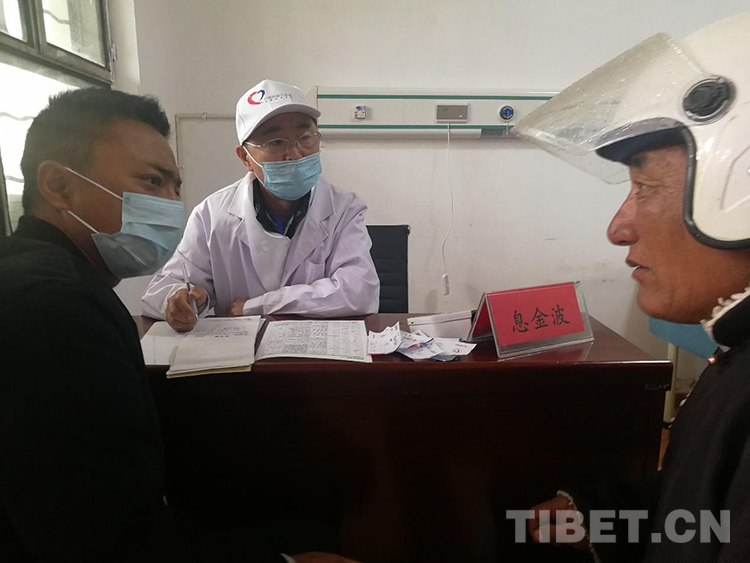 圖為席庸(左三)跟隨“同心?共鑄中國心”中醫(yī)藥雙車行醫(yī)療團隊來到達日縣查朗寺義診