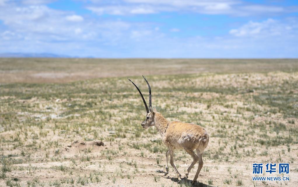 4月20日,藏羚羊在三江源可可西里地區(qū)活動(dòng)。新華社發(fā)