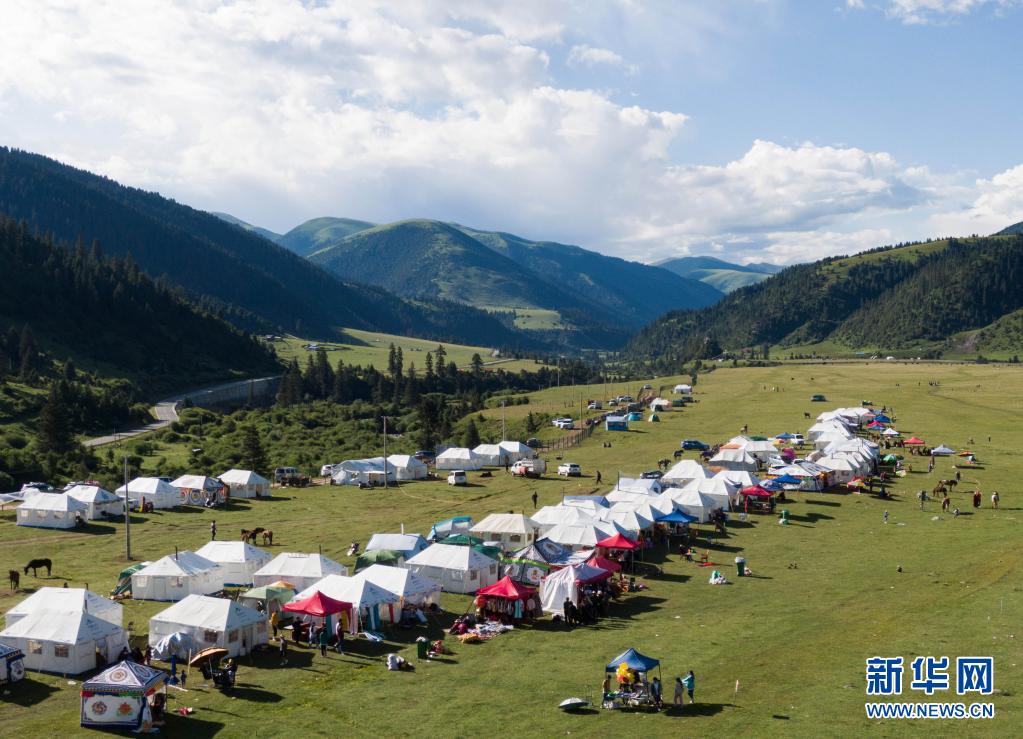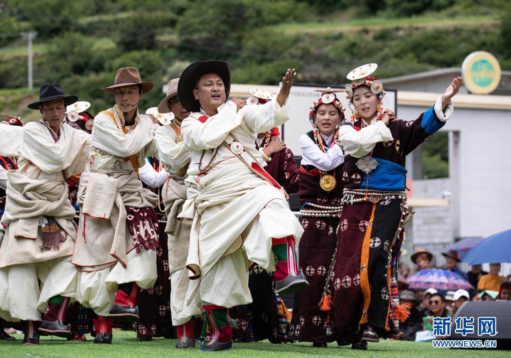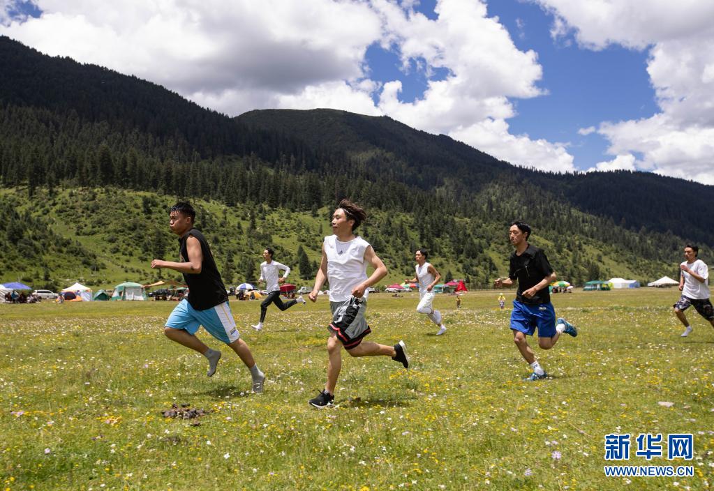 7月23日,在道孚縣亞卓鎮(zhèn),當?shù)夭刈迦罕娫谔?。新華社記者 江宏景 攝