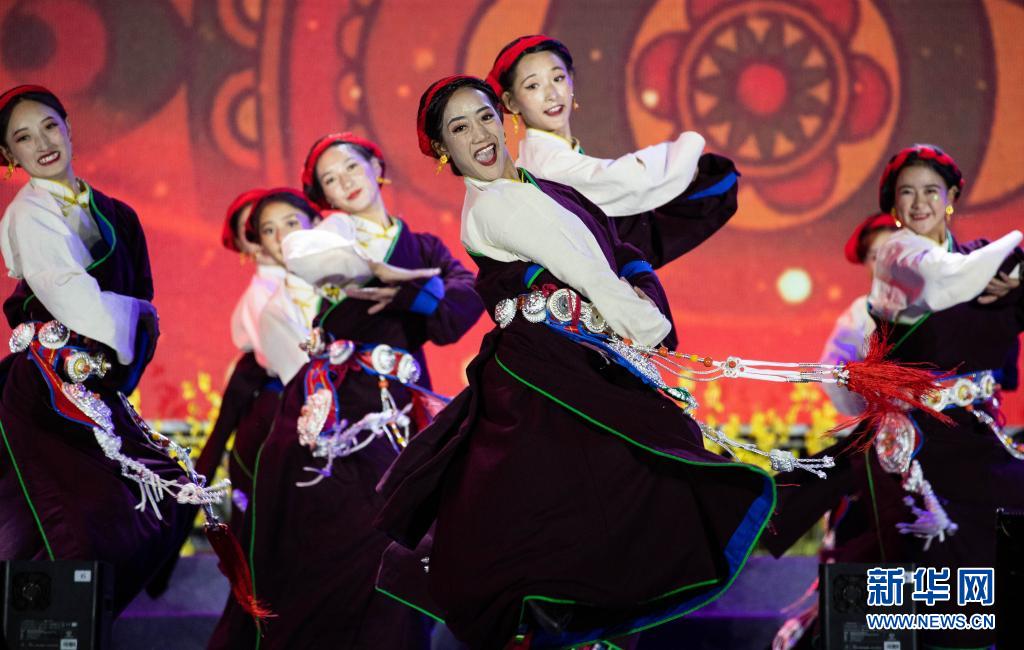7月23日,在道孚縣縣城,演員們在舞臺上表演。新華社記者 江宏景 攝