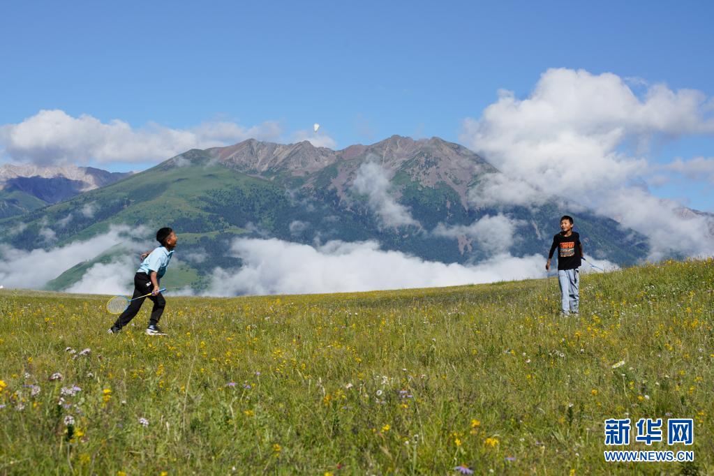 7月22日,小朋友在道孚縣白日山草原上玩耍。新華社記者 劉夢琪 攝