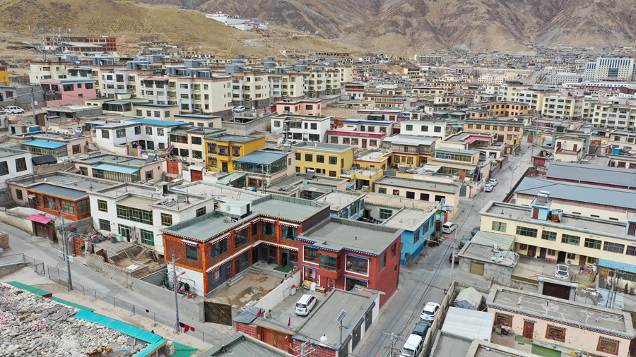 這是3月10日拍攝的重建后的玉樹市扎西大同村一角(無人機照片)。新華社記者 張宏祥 攝