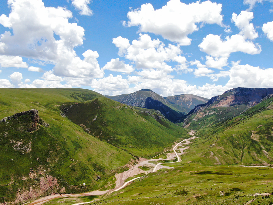 航拍青海省玉樹藏族自治州玉樹市。(2020年6月18日攝)新華網(wǎng) 潘彬彬攝