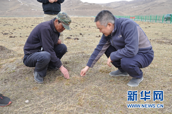 龍瑞軍(右)與牧民交流放牧草地管理經(jīng)驗。(受訪者供圖)