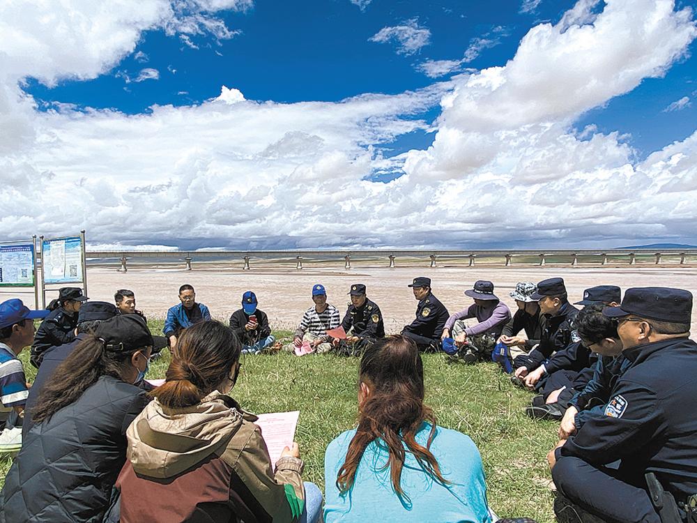 多部門聯(lián)合協(xié)作的網(wǎng)格化管理體系,為唐古拉山鎮(zhèn)沱沱河的長江禁捕工作筑起了一道堅實防線。2020年12月,唐古拉山鎮(zhèn)人民政府結合河湖長制工作,與唐古拉山鎮(zhèn)派出所、鎮(zhèn)森林公安局派出所協(xié)商,制定了“一河一警長”工作機制。唐古拉山鎮(zhèn)派出所民警周治安說:“為加強河湖及魚類資源保護的執(zhí)法保障,我們要做到每條河流有人巡查,每個河段有人管理,四天左右都會巡查一次,通過內(nèi)外協(xié)作配合,形成強大工作合力,有效打擊了涉水違法行為,也構建起長江禁捕管理工作的長效機制?!?/p>