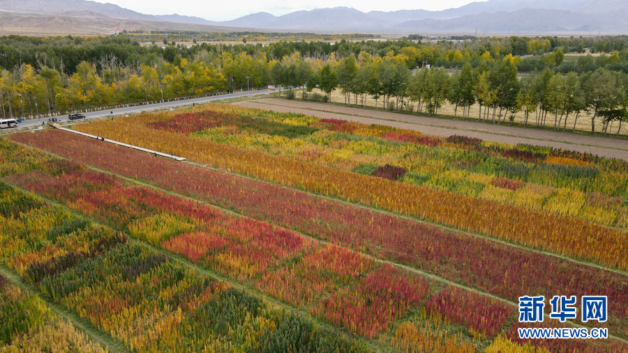 航拍豐收的藜麥地,色彩艷麗如畫卷。新華網(wǎng) 卡婭梅朵 攝