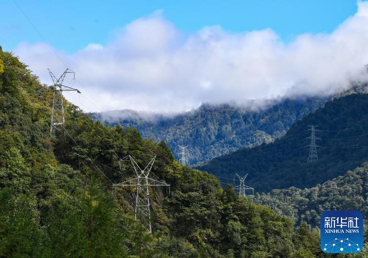 這是10月18日在四川省雅安市天全縣境內(nèi)拍攝的電網(wǎng)線路。新華社記者 王曦 攝