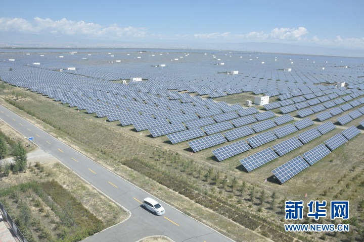 這是9月1日拍攝的位于青海省海南藏族自治州共和縣光伏產(chǎn)業(yè)園內(nèi)的光伏發(fā)電項目。新華社記者 陳凱 攝