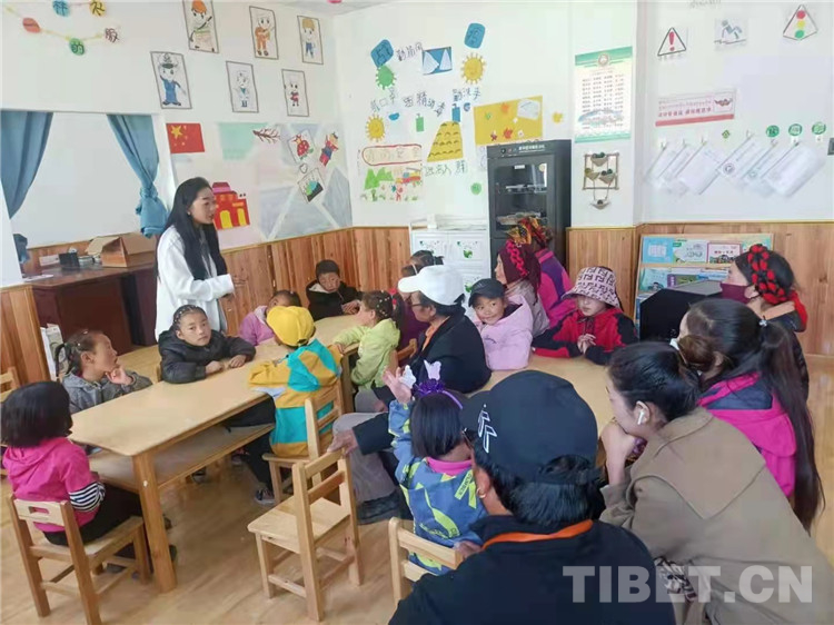 圖為俄達(dá)門巴村幼教點(diǎn)老師、學(xué)生及家長(zhǎng)學(xué)習(xí)《家庭教育促進(jìn)法》