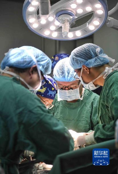 2020年1月16日,在甘孜州人民醫(yī)院,王文濤(左)進(jìn)行“體外肝切除聯(lián)合自體肝移植手術(shù)”。新華社記者 劉坤 攝