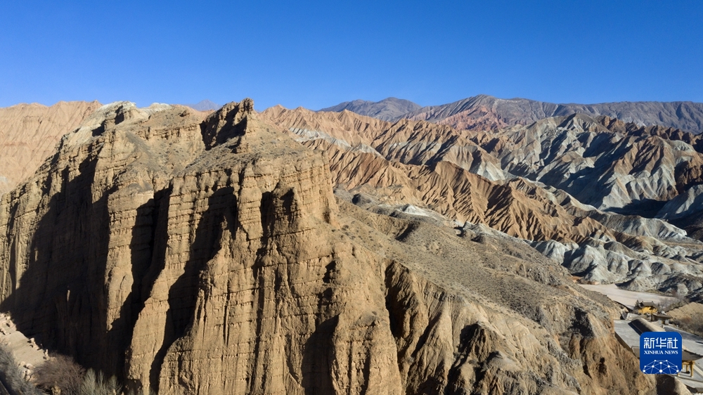 這是12月24日在貴德縣拍攝的丹霞地貌(無人機(jī)照片)。新華社記者 陳杰 攝