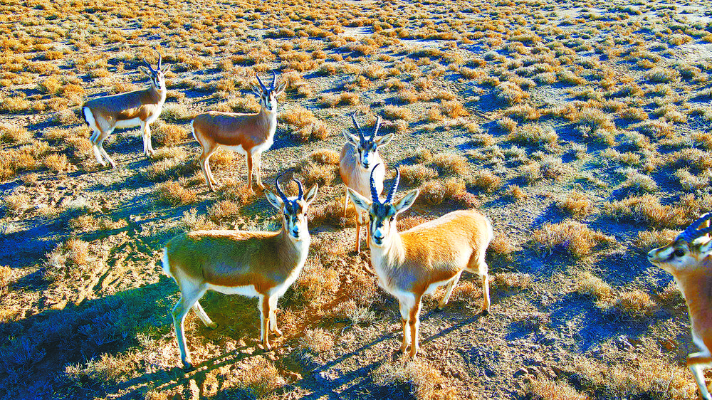近日,海西蒙古族藏族自治州當?shù)財z影愛好者在祁連山國家公園德令哈片區(qū)拍攝到結(jié)伴覓食的珍稀野生動物——鵝喉羚。鵝喉羚屬典型的荒漠、半荒漠區(qū)域生存的動物,體型似黃羊,因雄性在發(fā)情期喉部肥大,狀如鵝喉,故得名“鵝喉羚”。