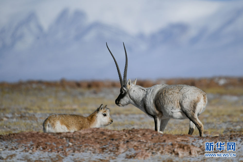 這是在可可西里拍攝的藏羚羊(1月20日攝)。新華社 潘彬彬 攝