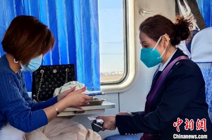 圖為小慢車列車值班員郇靜為乘客補票。候?qū)毾?攝