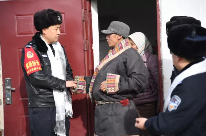 2020年1月,鄭天海帶領(lǐng)民警到鐵路沿線牧民家中開展幫扶慰問(資料照片)。 新華社發(fā) 高慎陽(yáng) 攝