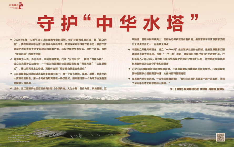2021年6月,習(xí)近平總書記赴青海考察時(shí)強(qiáng)調(diào),保護(hù)好青海生態(tài)環(huán)境,是“國(guó)之大者”。要牢固樹立綠水青山就是金山銀山理念,切實(shí)保護(hù)好地球第三極生態(tài)。要把三江源保護(hù)作為青海生態(tài)文明建設(shè)的重中之重,承擔(dān)好維護(hù)生態(tài)安全、保護(hù)三江源、保護(hù)“中華水塔”的重大使命。要繼續(xù)推進(jìn)國(guó)家公園建設(shè),理順管理體制,創(chuàng)新運(yùn)行機(jī)制,加強(qiáng)監(jiān)督管理,強(qiáng)化政策支持,探索更多可復(fù)制可推廣經(jīng)驗(yàn)。