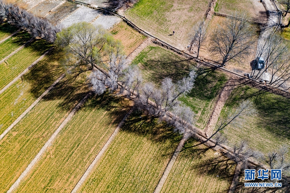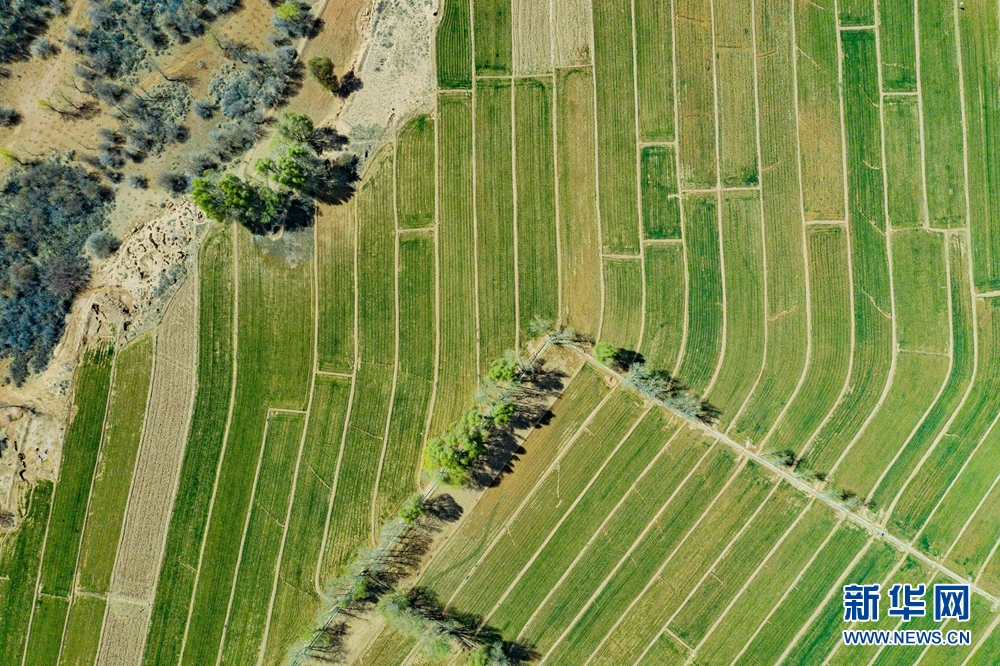 一塊塊麥田錯(cuò)落有致裝扮著大地。新華網(wǎng) 宋忠勇 攝