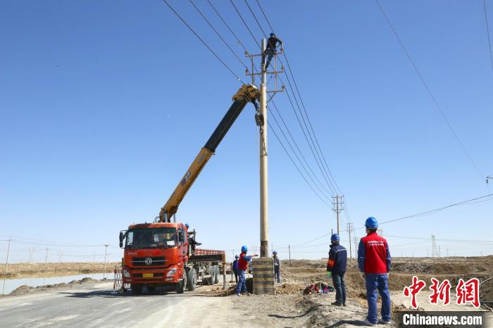 圖為青海海西供電公司員工在10千伏區(qū)七路15號(hào)桿更換桿塔組件。 國(guó)網(wǎng)海西供電公司供圖