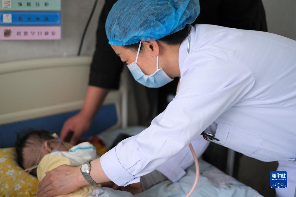 4月25日,青海省婦女兒童醫(yī)院醫(yī)生、青南支醫(yī)隊(duì)員孫敬在青海省玉樹藏族自治州人民醫(yī)院給患者檢查身體。新華社記者 韓方方 攝