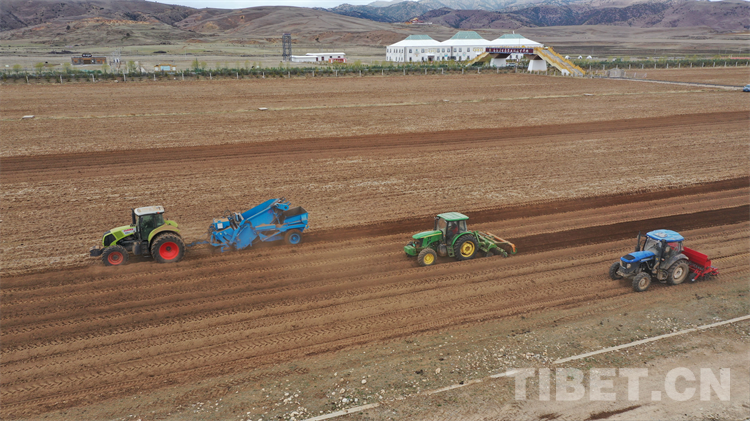 中國西藏網(wǎng)訊 5月2日,在海拔3600多米的四川省甘孜藏族自治州理塘縣濯桑鄉(xiāng)圣地農(nóng)莊蘿卜基地,撿石機、平整機、播種機正運用北斗衛(wèi)星一體化播種蘿卜,今年將分期三批完成6000多畝高原白蘿卜播種任務,極大地節(jié)省了人力、物力,實現(xiàn)了機械化精密播種。(中國西藏網(wǎng) 通訊員/葉強平 格立桑登)