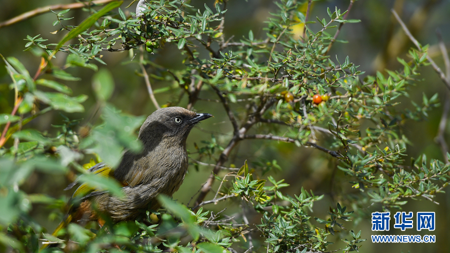 在青海省玉樹藏族自治州通天河畔勒巴溝拍攝到的橙翅噪鹛。
