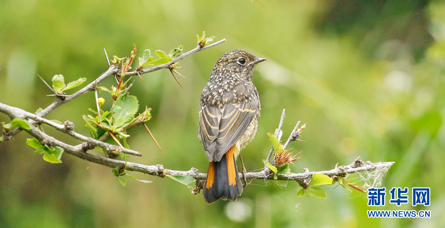 在青海省玉樹藏族自治州囊謙縣境內拍攝到的白喉紅尾鴝(幼鳥)。