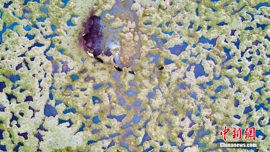 6月18日,航拍長江源區(qū)最大泥碳濕地——查旦濕地。查旦濕地地處青海省玉樹州雜多縣境內(nèi),唐古拉山北麓與瀾滄江西源扎曲形成的一個(gè)夾角。由于受南亞季風(fēng)的影響,每年5月至9月之間形成豐沛的降水,從而濕地廣布,河流縱橫,被稱之為“青藏水鄉(xiāng)”,長江南源當(dāng)曲(意為沼澤河)發(fā)源于此。 李江寧 攝
