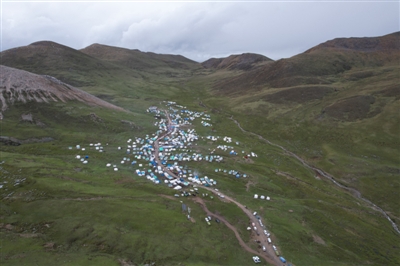 對(duì)理塘人來說,蟲草一直是大部分農(nóng)牧民的主要收入。雖然今年采集蟲草的人不及往年,但阿加溝依然涌進(jìn)了上萬人。6月8日下午,部分采集者已經(jīng)下山,營(yíng)地里尚有數(shù)百個(gè)帳篷錯(cuò)落有致地搭建在道路兩邊的草地上,人們都去了山上,整個(gè)山谷一片沉靜。只有傍晚六七點(diǎn)的時(shí)候,人們才像雪水一樣從山上匯聚下來,這里才變得熱氣騰騰。