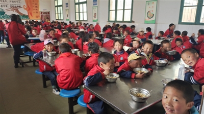 6月10日中午12時(shí),午飯鈴聲響起,理塘縣村戈鄉(xiāng)小學(xué)的428名學(xué)生在操場(chǎng)上排得整整齊齊,等待就餐。