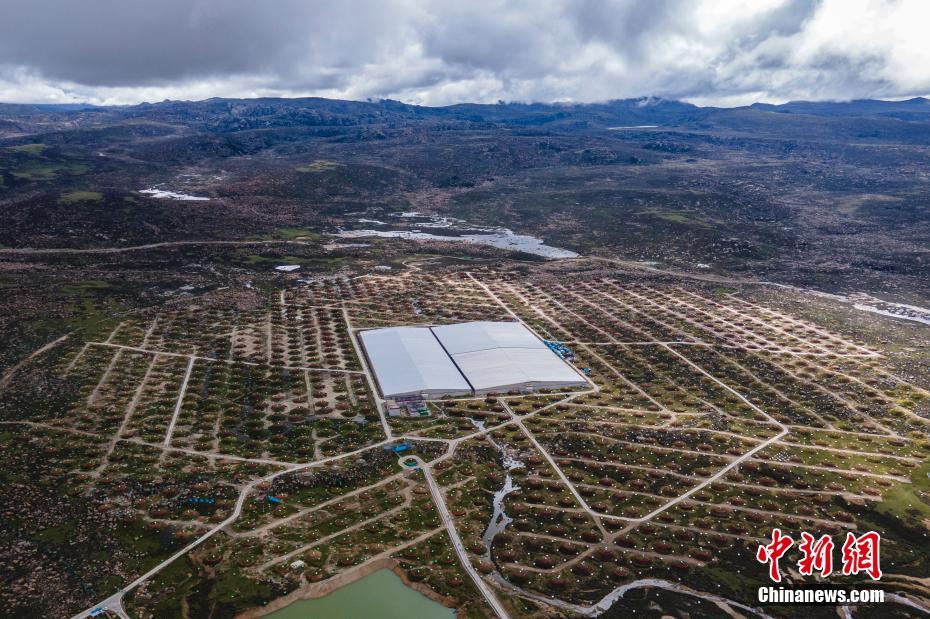 6月28日,四川稻城,航拍稻城高海拔宇宙線觀測站。海拔4410米的四川省甘孜州稻城縣海子山,5216個電磁粒子探測器和1188個繆子探測器,以及占地78000平方米的水切倫科夫探測器有序分布在1.36平方公里范圍,十分壯觀,這是中國建設(shè)的第三代高山宇宙線實驗站。中新社記者 劉忠俊 攝