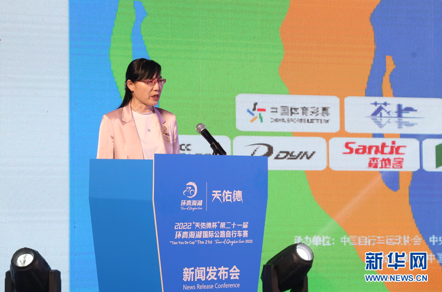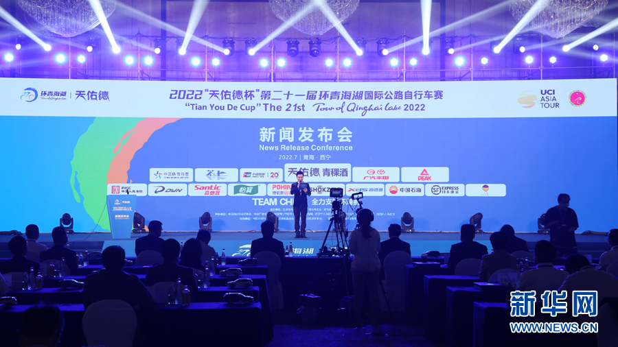 2022第二十一屆環(huán)青海湖國際公路自行車賽新聞發(fā)布會現(xiàn)場。新華網(wǎng) 卡婭梅朵 攝