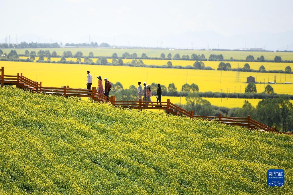 7月9日,游客在門源縣的一處旅游景點(diǎn)內(nèi)游玩。新華社記者 李琳海 攝