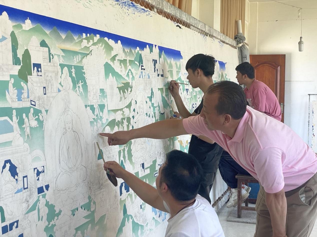 作為熱貢藝術(建筑彩繪)省級傳承人的更登,2007年3月成立黃南州更登熱貢藝術有限公司,先后培養(yǎng)了100多名優(yōu)秀的唐卡藝人,自公司成立以來累計培養(yǎng)學員410人,其中300余人現(xiàn)已成為熱貢藝人群體中的精英人才,公司助力200多戶脫貧戶增收致富。