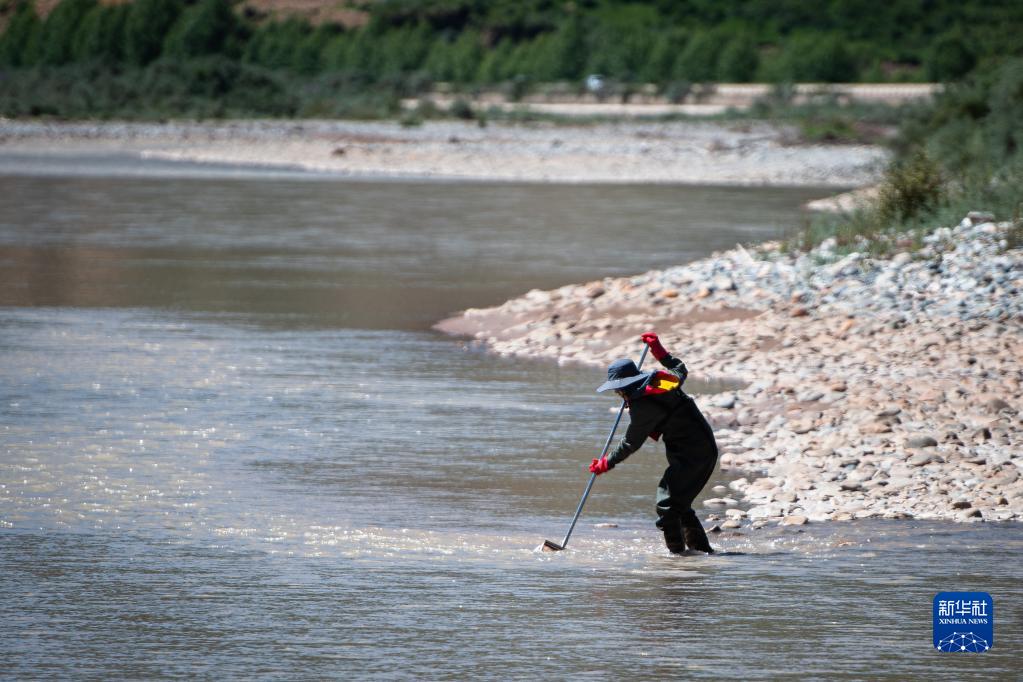 7月24日,長(zhǎng)江科學(xué)院科考隊(duì)員劉晗在瀾滄江源區(qū)的扎曲采集魚類樣本。新華社記者 肖藝九 攝