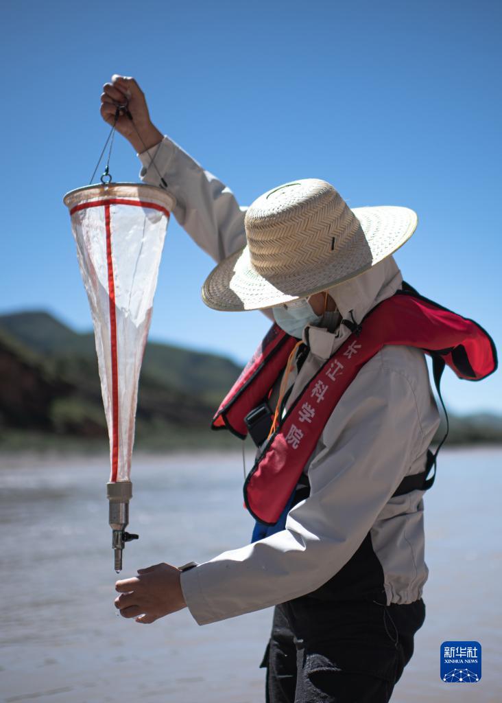 7月24日,長(zhǎng)江科學(xué)院科考隊(duì)員李魯?shù)ぴ跒憸娼磪^(qū)的扎曲采集浮游動(dòng)物樣本。新華社記者 肖藝九 攝