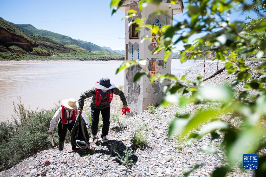 7月24日,長(zhǎng)江科學(xué)院科考隊(duì)員李魯?shù)ぃㄓ遥┡c劉晗在瀾滄江源區(qū)的扎曲進(jìn)行科考工作?!⌒氯A社記者 肖藝九 攝