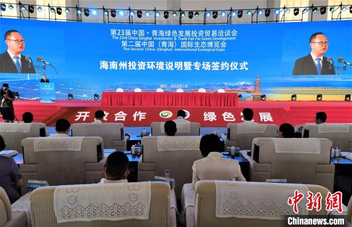 圖為海南藏族自治州投資環(huán)境說明暨專場簽約儀式現(xiàn)場。祁增蓓 攝