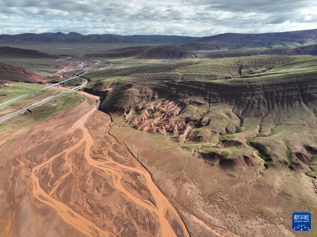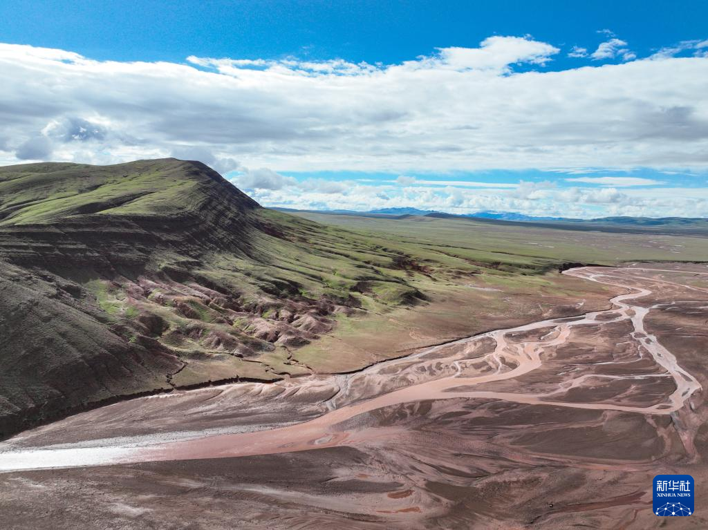 這是7月18日在可可西里拍攝的“紅山脈”(無人機照片)。新華社記者 張龍 攝