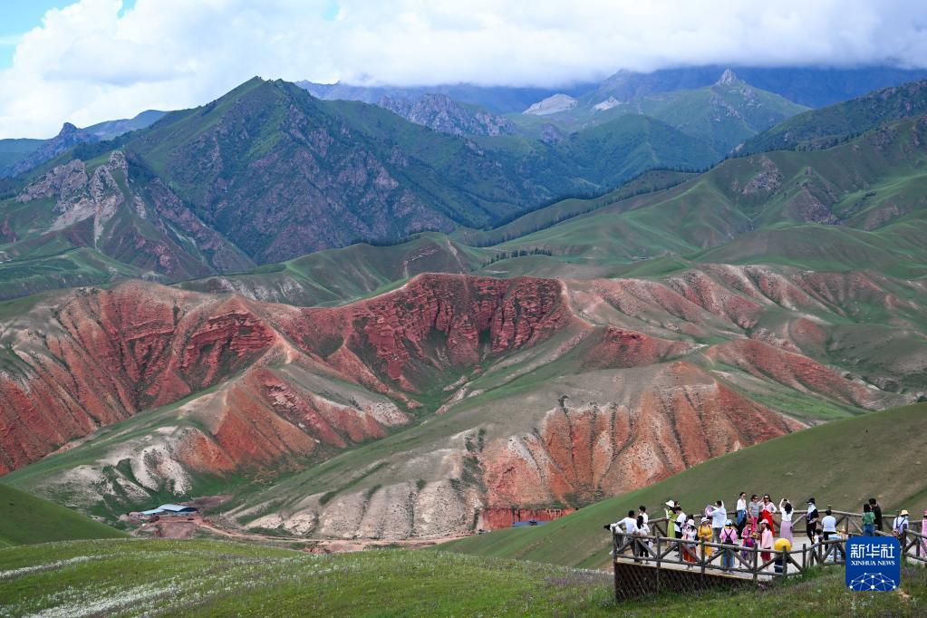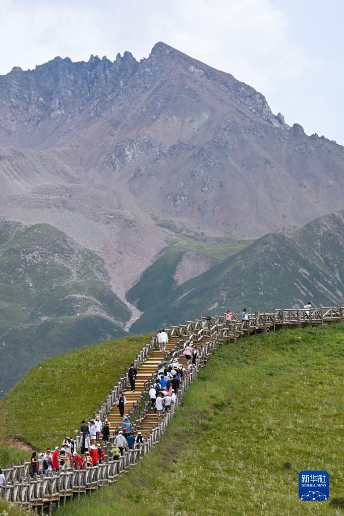 8月10日,游客在青海省海北藏族自治州祁連縣卓爾山景區(qū)內(nèi)游玩。新華社記者 張龍 攝