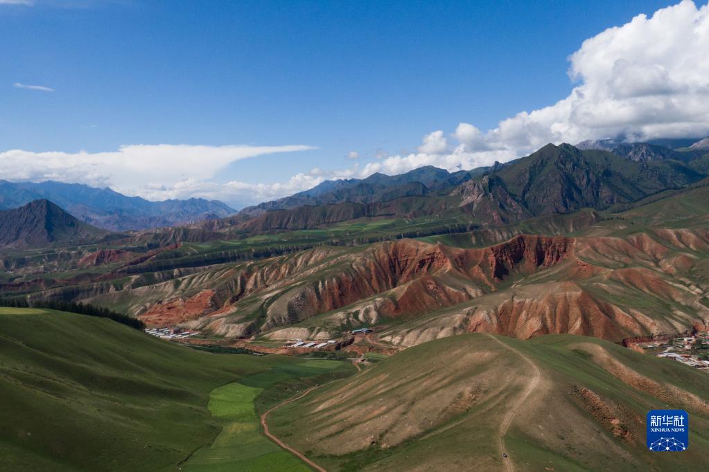 青海省海北藏族自治州祁連縣風(fēng)光(8月10日攝,無人機(jī)照片)。新華社記者 張龍 攝