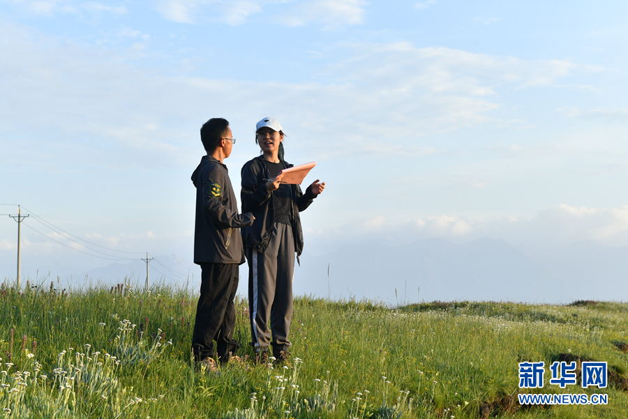 孔玥嶠和生態(tài)管護員正在野外溝通工作。新華網(wǎng) 卡婭梅朵 攝