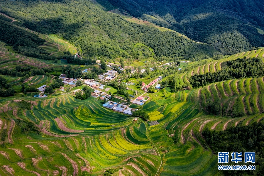 盛夏時節(jié),地處青海省西寧市湟中區(qū)上五莊鎮(zhèn)包勒村的梯田風景如畫,綠意盎然。新華網(wǎng) 宋忠勇 攝