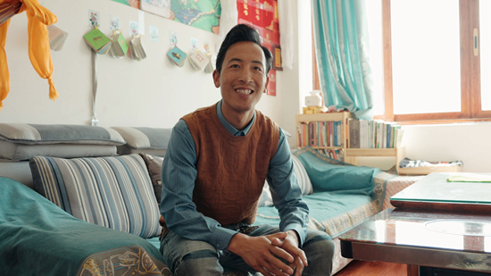 交情樓,是交通銀行為解決三完小教師住宿需求,投資400萬元修建的1棟24套教師宿舍。在澤仁彭措的家里,記者看到,兩室一廳干凈整潔,家具家電一應俱全,拉開客廳的窗簾,天空之城的意境便呈現(xiàn)在眼前。