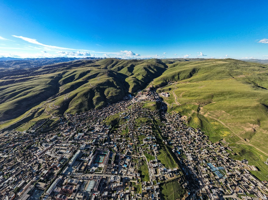 俯瞰理塘縣城。人民網(wǎng)記者 張若涵 攝