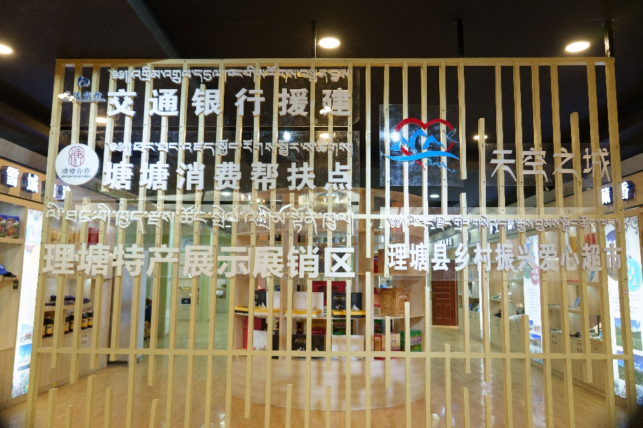 2018年,交通銀行幫助理塘建立愛心扶貧超市,含實體店和網(wǎng)店兩部分:實體店主要服務(wù)貧困戶日常消費,采用積分制,根據(jù)貧困戶參加力所能及的勞動和生產(chǎn)給予相應(yīng)積分,貧困戶可在超市憑積分換購商品;網(wǎng)店是通過與電商平臺的對接,銷售理塘特色農(nóng)牧商品和手工藝品,銷售利潤用于豐富實體店的品類,反哺當(dāng)?shù)剞r(nóng)戶。