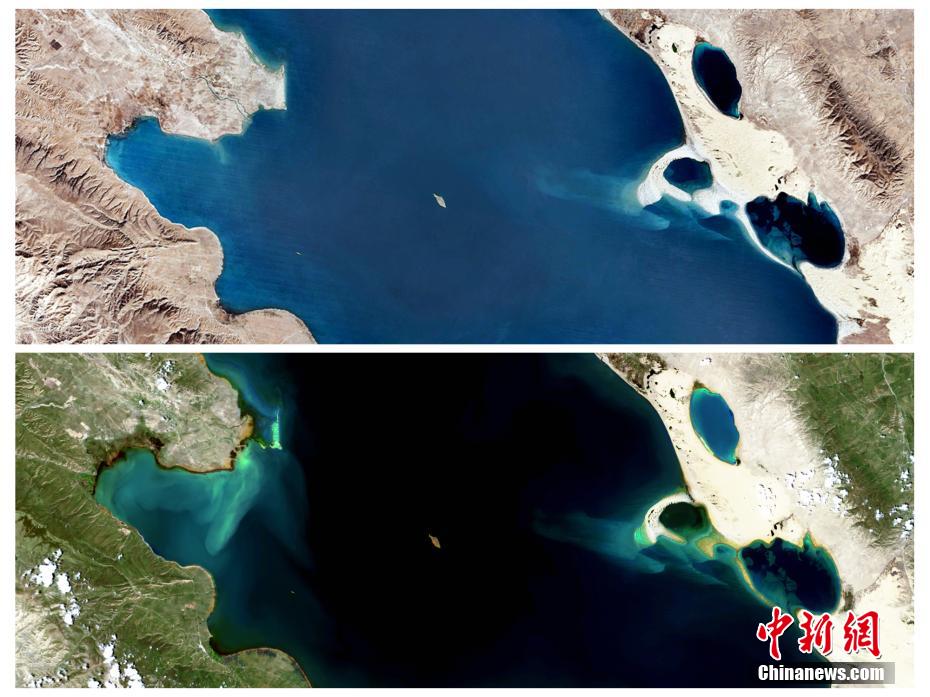 衛(wèi)星鳥瞰青海:沙化治理明顯,青海湖如藍寶石